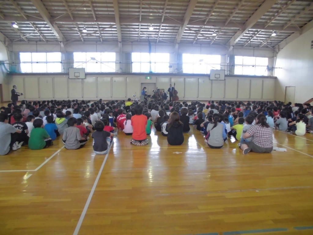 今日はレッスンの合間を縫って、市内の小学校・中学校で講師の先生による音楽教室を開きました!児童も生徒も静かに熱心に聴き入っていましたよ!