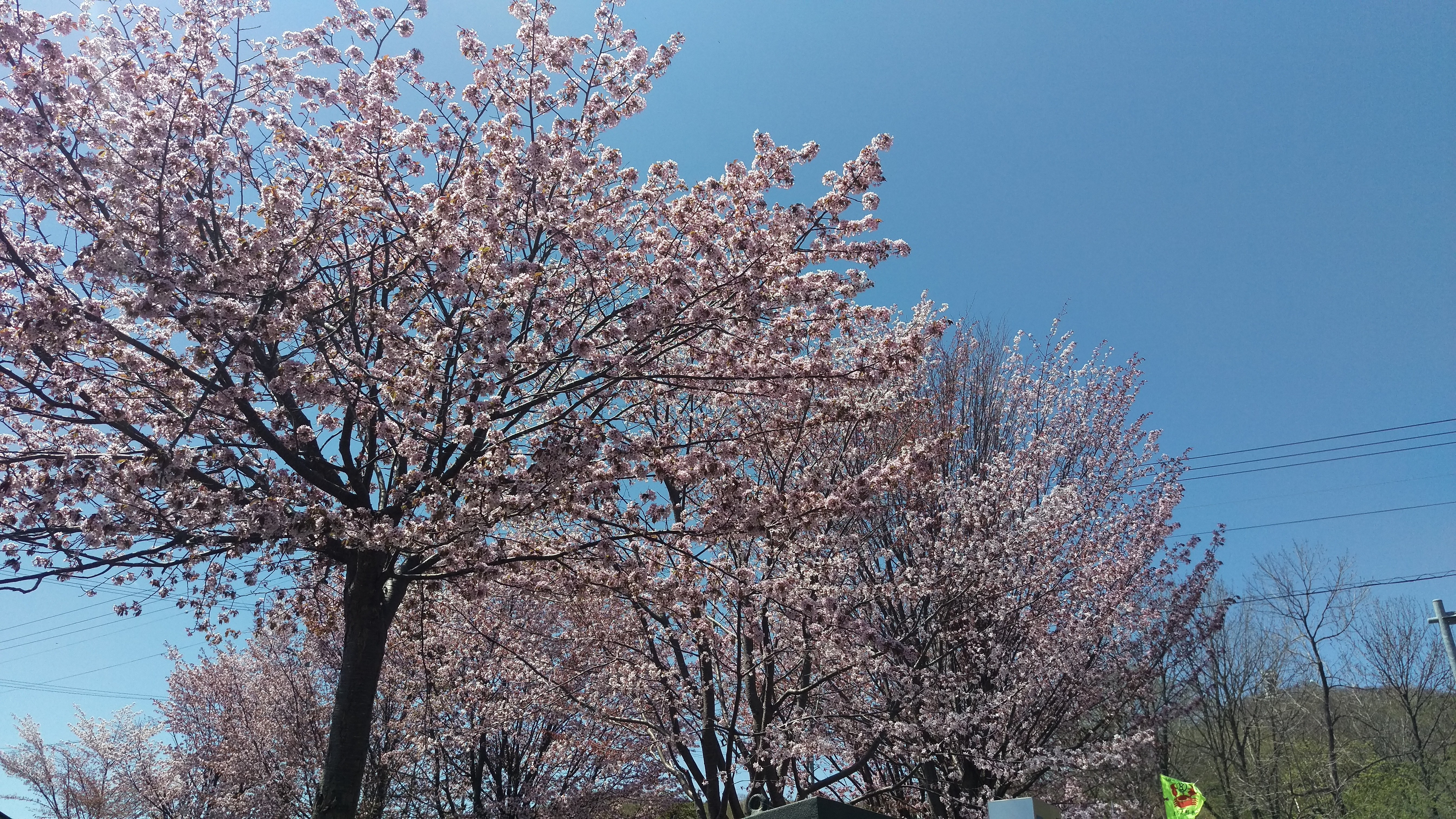 今日は雲一つない快晴です。GW中に咲き始めた桜(エゾヤマザクラ)も見頃の紋別です。