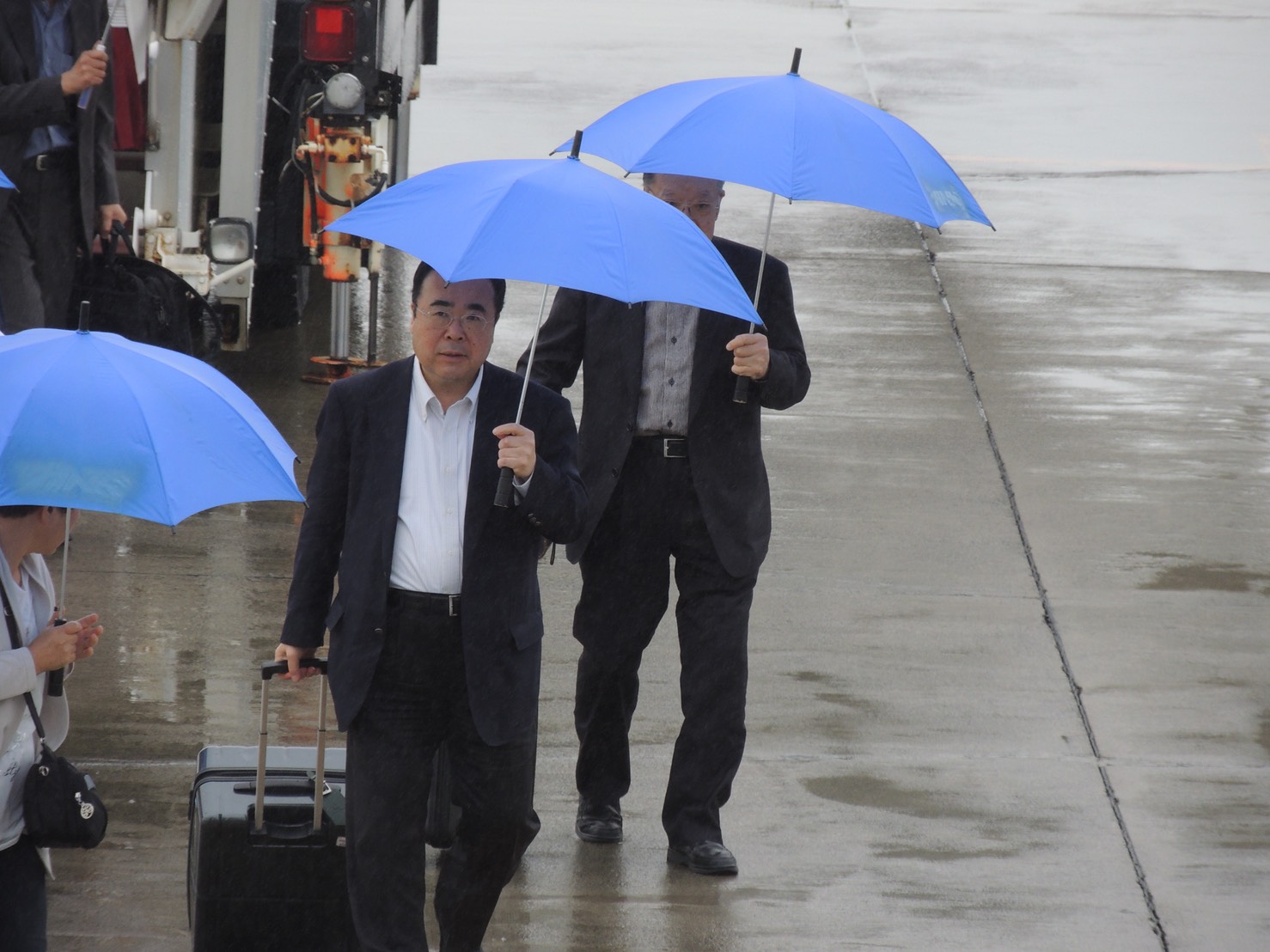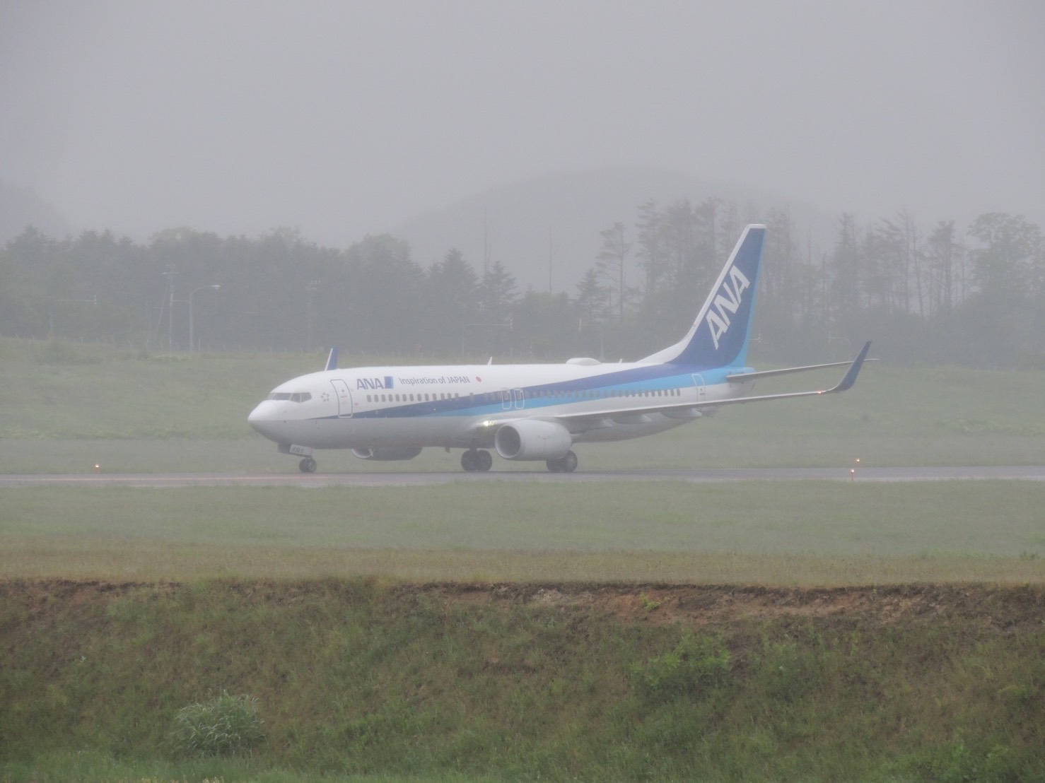 霧雨の中、着陸