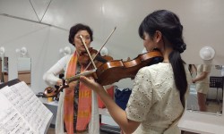 また、夕方からは昨日に引き続き、蓼沼先生による地元小中学生向けのピアノレッスン教室も予定されております。19時からは全員での合奏練習が行われる予定です。